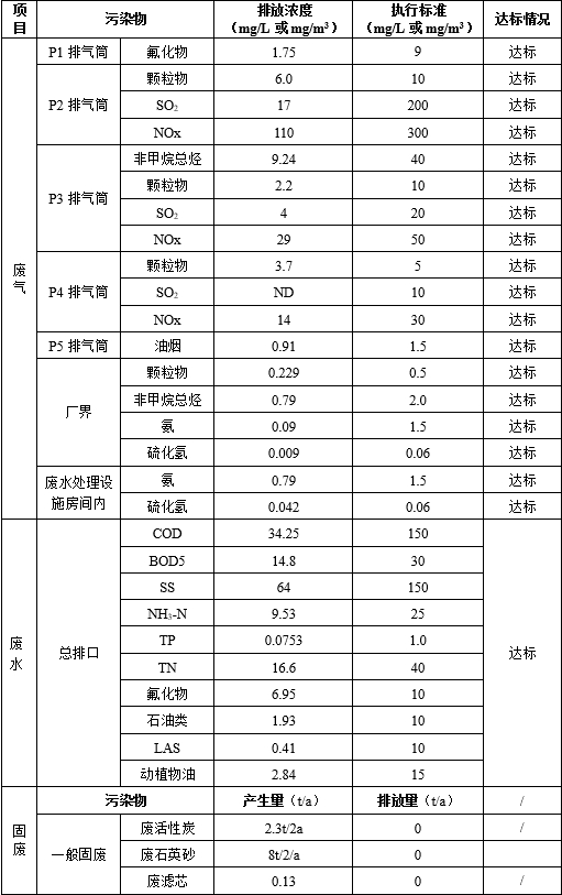 5、主要污染物:颗粒物、SO2、NOx、氟化物、非甲烷总烃、COD、NH3-N等